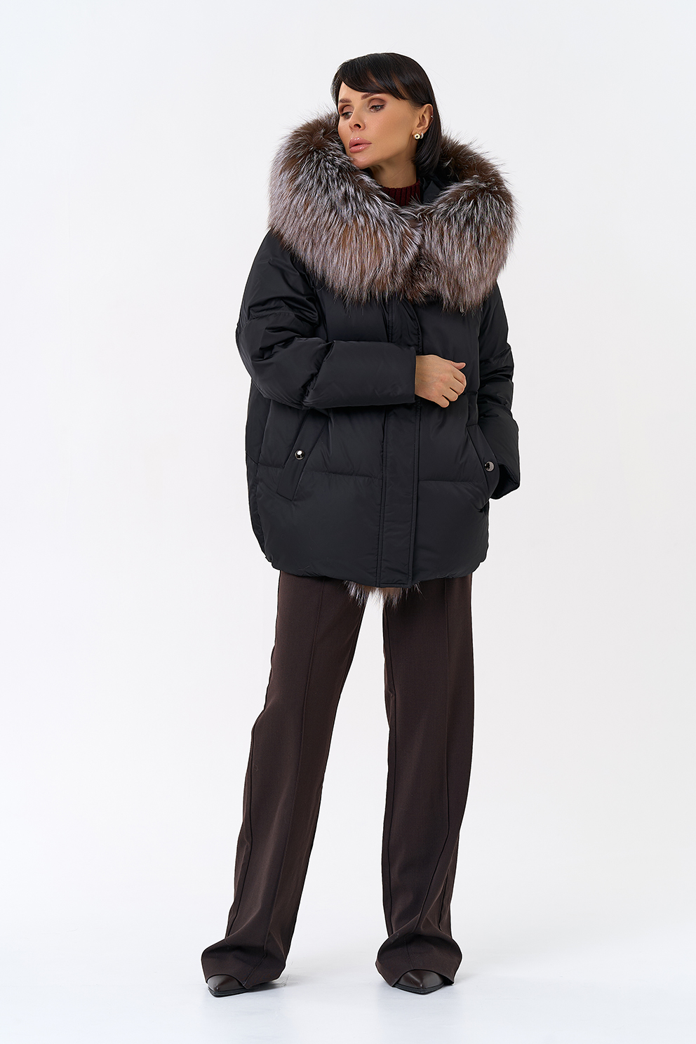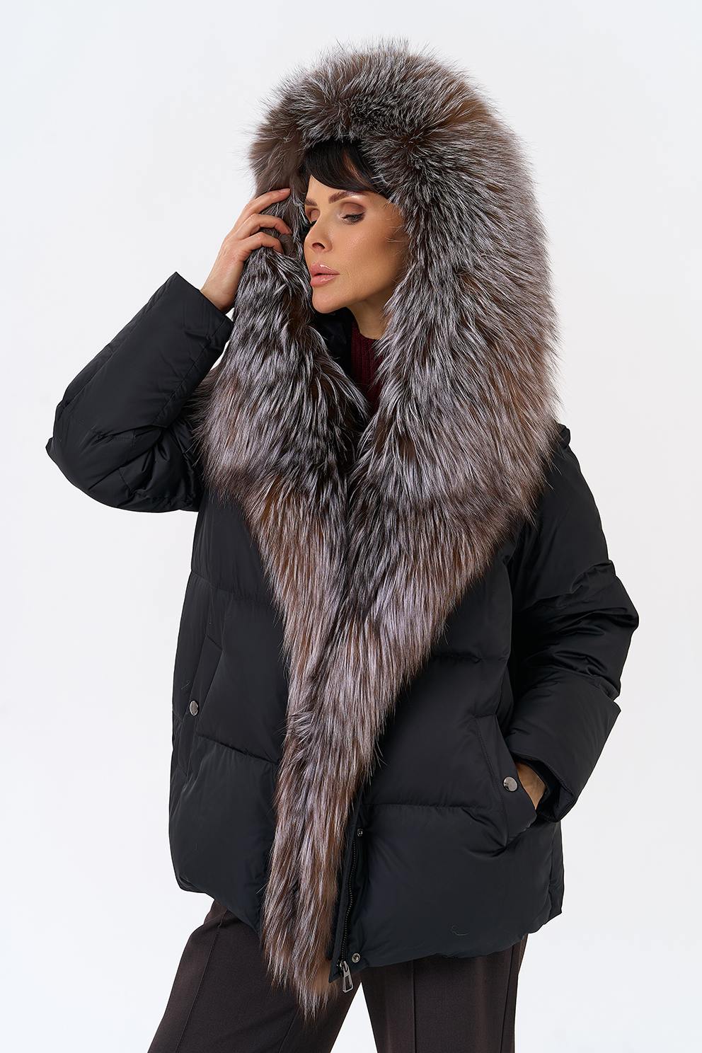 Крой воротника - капюшон, отделка блюфрост