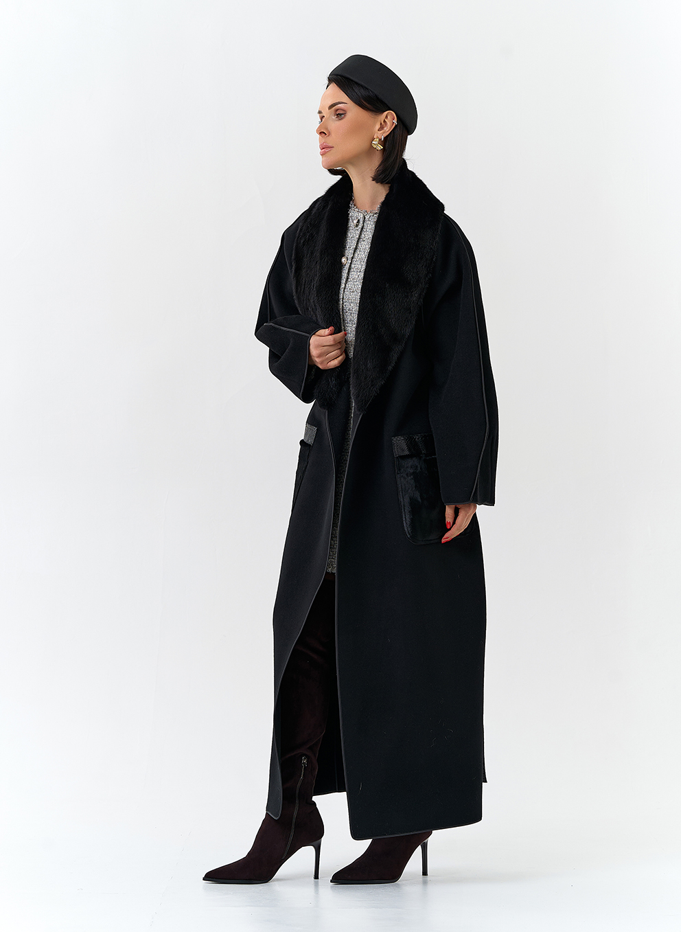 Отделка воротника - съемный мех норки, цвет черный